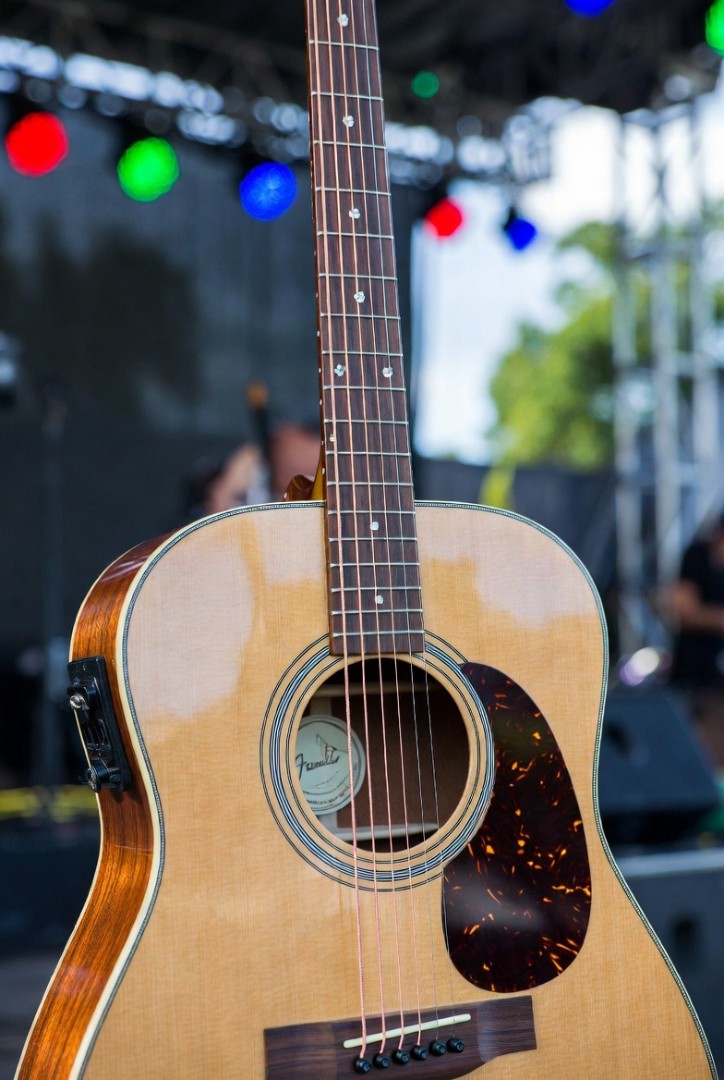 Глянцевая натуральная отделка подчёркивает красивую текстуру дерева — выглядит классически, timeless и с настоящим «фендеровским» шармом. Черепаховый пикгард (tortoise pickguard) защищает деку от царапин медиатором, перламутровая розетка и белые точки-инкрустации на грифе добавляют винтажной элегантности и узнаваемости. Гриф из махагони с накладкой из ореха (walnut) и скаллопированной системой связей X-bracing лежит в руке комфортно — slim-профиль, радиус 12", ширина порожка 43 мм (NuBone для лучшего сустейна) делают баррэ и аккорды проще даже для новичков. 20 ладов, закрытые хромированные колки Die-Cast держат строй стабильно, регулируемый анкер позволяет подстроить инструмент под себя.